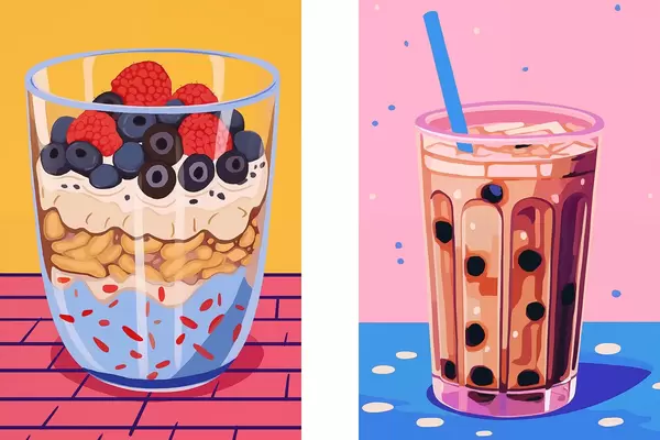 Poster Buborékos tea és müzli gyümölccsel Nr d00545