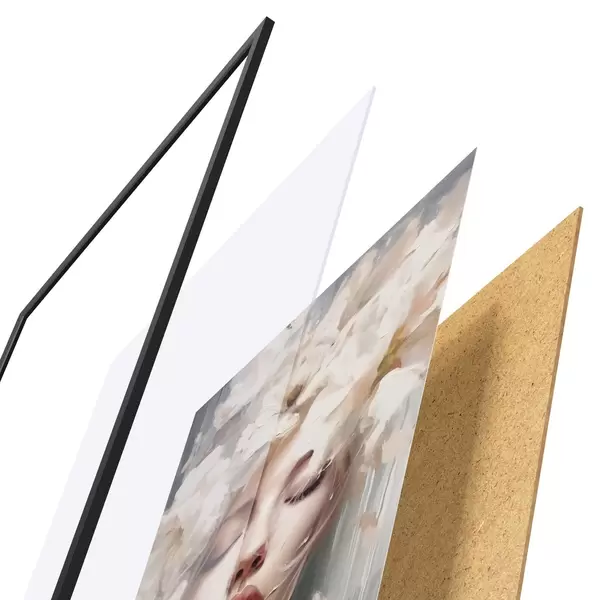 A poszter keretből, plexiből, nyomtatott képből és forgácslap hátlapból áll. A poszter a hátoldalon található rögzítőknek köszönhetően azonnal felakasztható a falra.