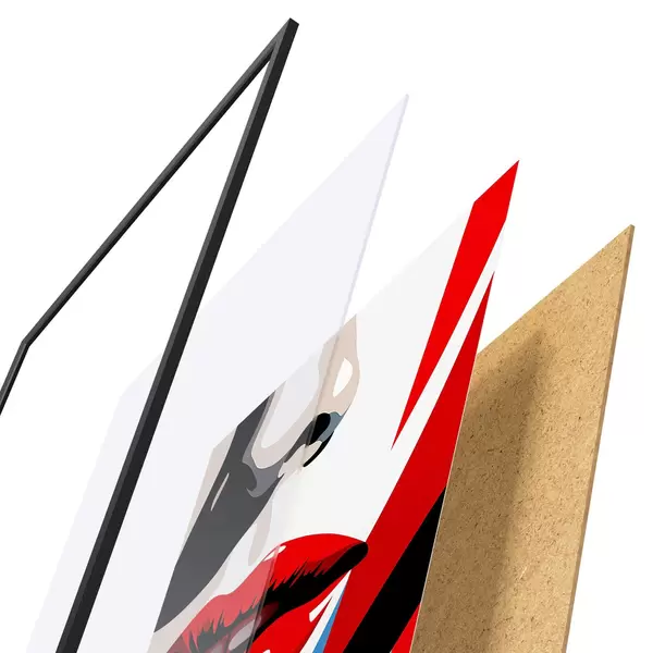 A poszter keretből, plexiből, nyomtatott képből és forgácslap hátlapból áll. A poszter a hátoldalon található rögzítőknek köszönhetően azonnal felakasztható a falra.
