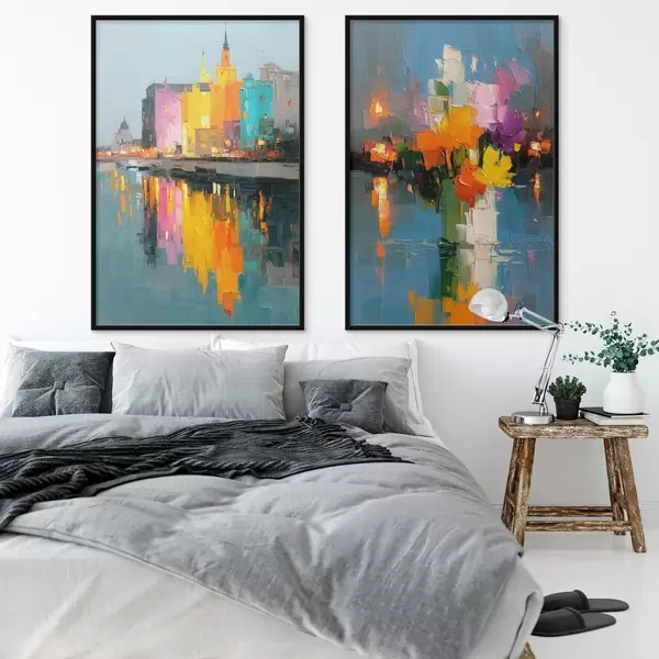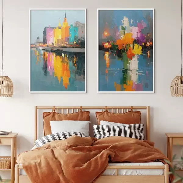 Poster Városi dinamika: absztrakt kompozíció a folyón tükröződő fényekkel Nr d00569