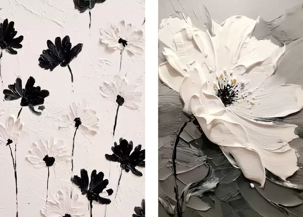 Plakát a sziklán Diptichon fehér és fekete virágokkal modern stílusban d00571