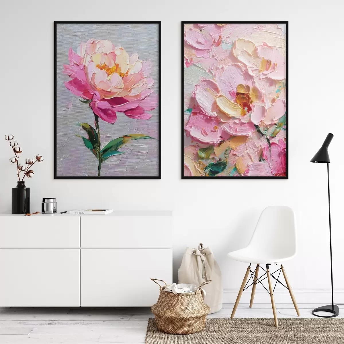 Plakát a sziklán Modern művészet rózsaszín virágokkal volumetrikus technikával d00572