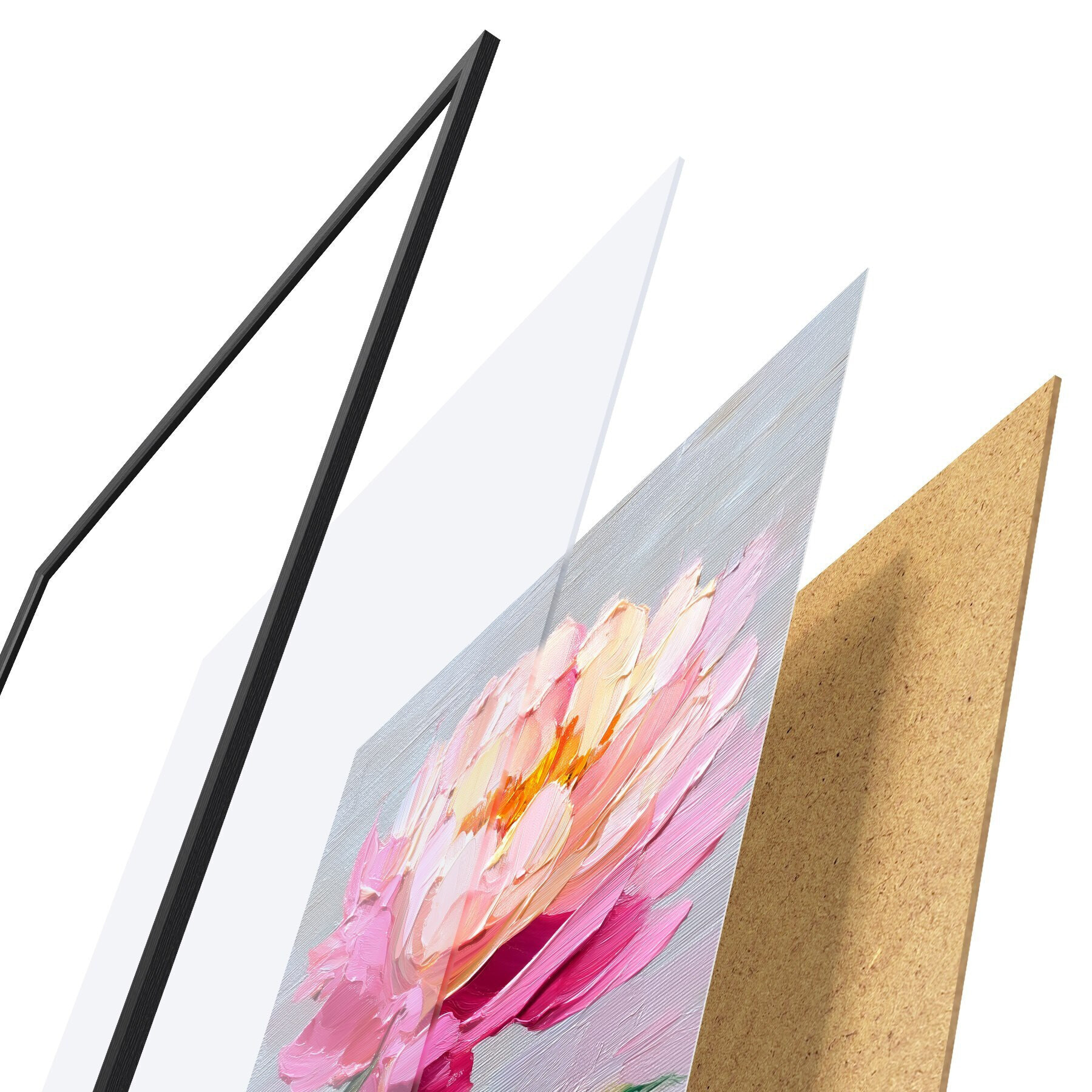 A poszter keretből, plexiből, nyomtatott képből és forgácslap hátlapból áll. A poszter a hátoldalon található rögzítőknek köszönhetően azonnal felakasztható a falra.