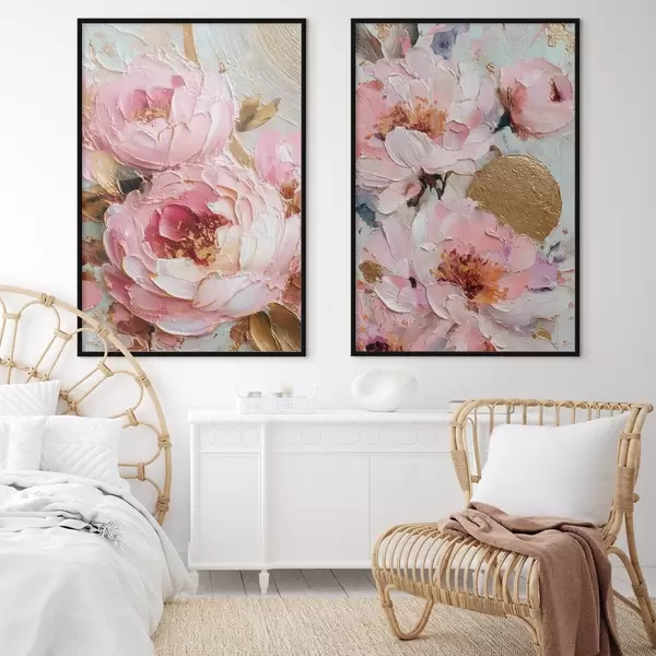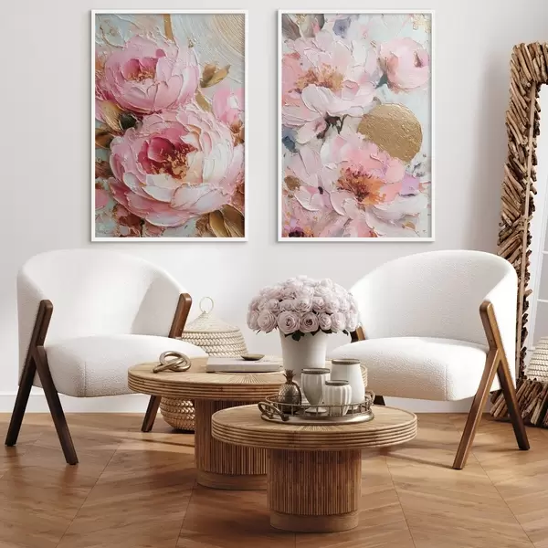 Poster Volumetrikus impasto festmény rózsaszín bazsarózsákkal és texturált részletekkel Nr d00573