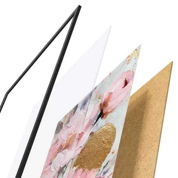 A poszter keretből, plexiből, nyomtatott képből és forgácslap hátlapból áll. A poszter a hátoldalon található rögzítőknek köszönhetően azonnal felakasztható a falra.