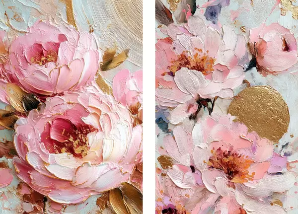 Poster Volumetrikus impasto festmény rózsaszín bazsarózsákkal és texturált részletekkel Nr d00573