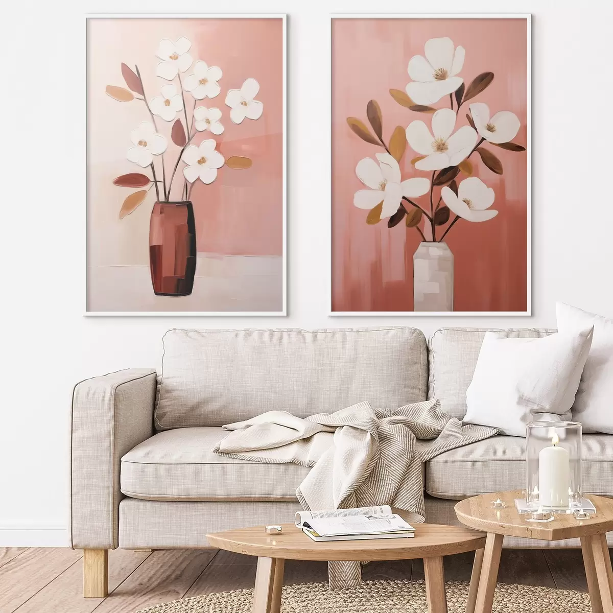 Poster Kompozíció kontrasztos vázákkal és texturált fehér virágokkal Nr d00575