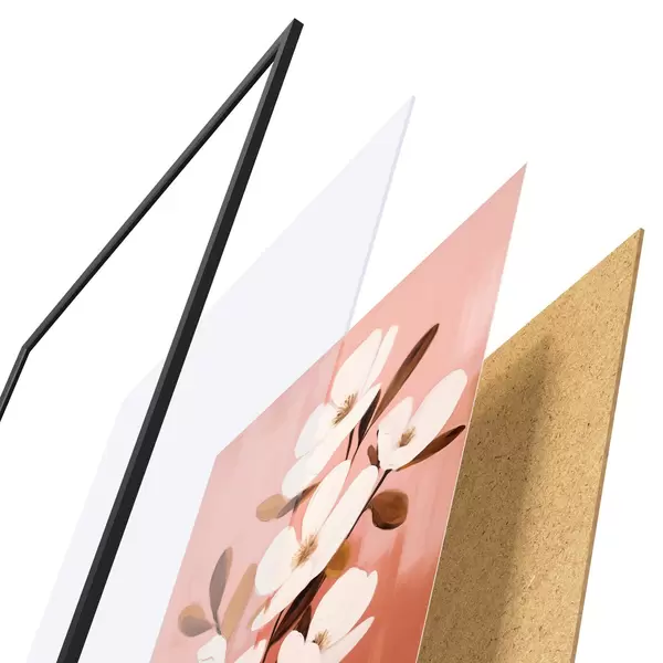 A poszter keretből, plexiből, nyomtatott képből és forgácslap hátlapból áll. A poszter a hátoldalon található rögzítőknek köszönhetően azonnal felakasztható a falra.
