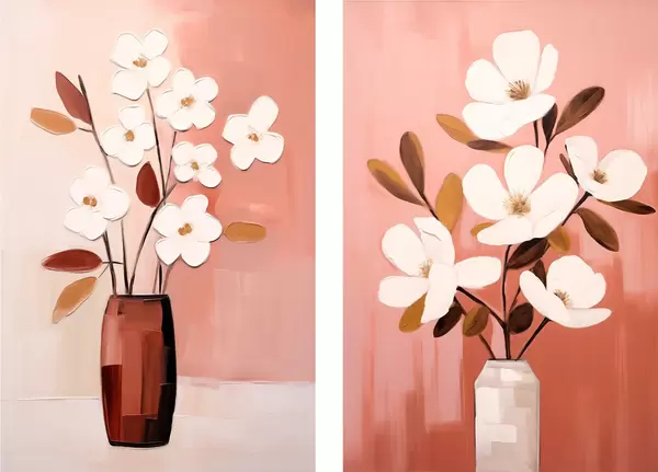Poster Kompozíció kontrasztos vázákkal és texturált fehér virágokkal Nr d00575