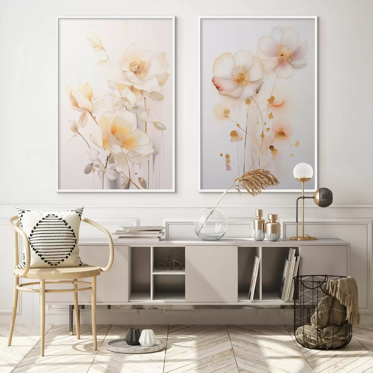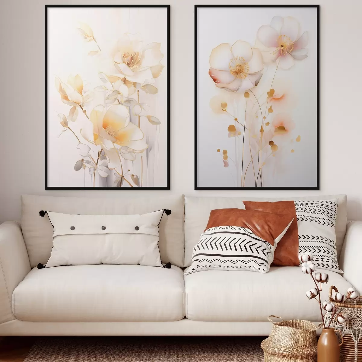 Poster Virágos duett: szelíd diptichon akvarell stílusban, elegáns vonalakkal Nr d00577