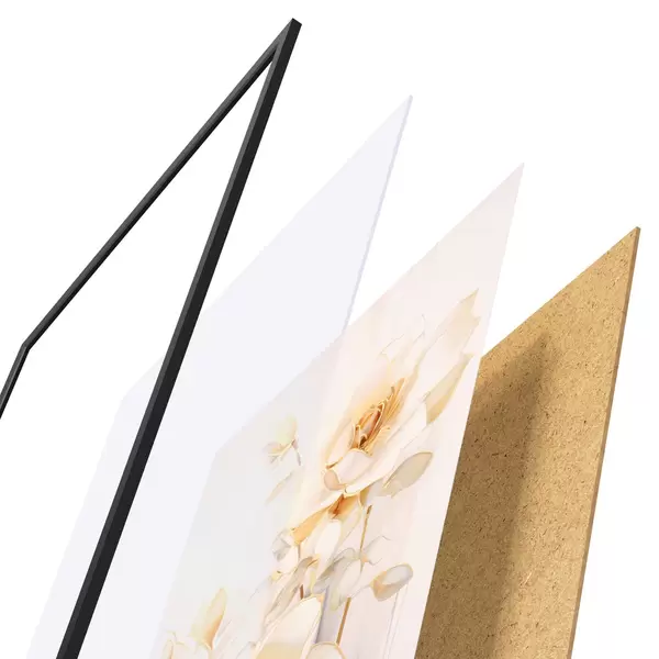 A poszter keretből, plexiből, nyomtatott képből és forgácslap hátlapból áll. A poszter a hátoldalon található rögzítőknek köszönhetően azonnal felakasztható a falra.