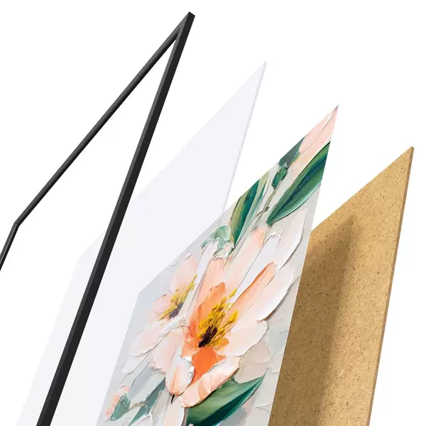 A poszter keretből, plexiből, nyomtatott képből és forgácslap hátlapból áll. A poszter a hátoldalon található rögzítőknek köszönhetően azonnal felakasztható a falra.