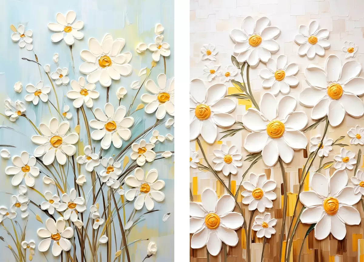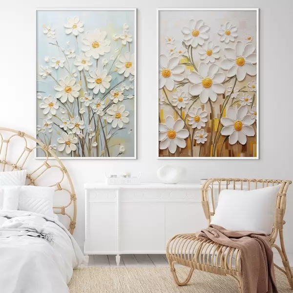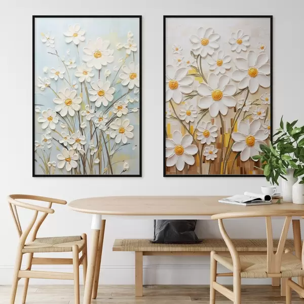 Poster Napsütötte virágok: művészeti duett volumetrikus százszorszépekkel és sárga akcentusokkal Nr d00580