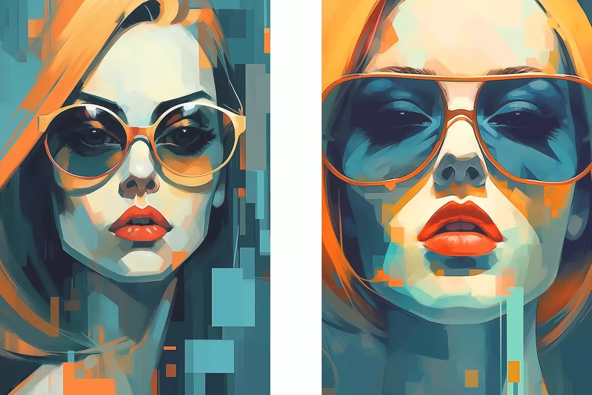 Poster Női portrék szemüveggel a digitális absztrakció stílusában Nr d00587