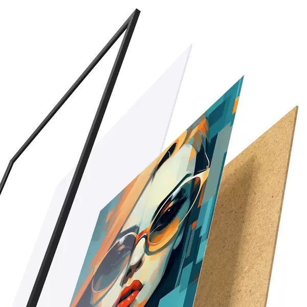 A poszter keretből, plexiből, nyomtatott képből és forgácslap hátlapból áll. A poszter a hátoldalon található rögzítőknek köszönhetően azonnal felakasztható a falra.