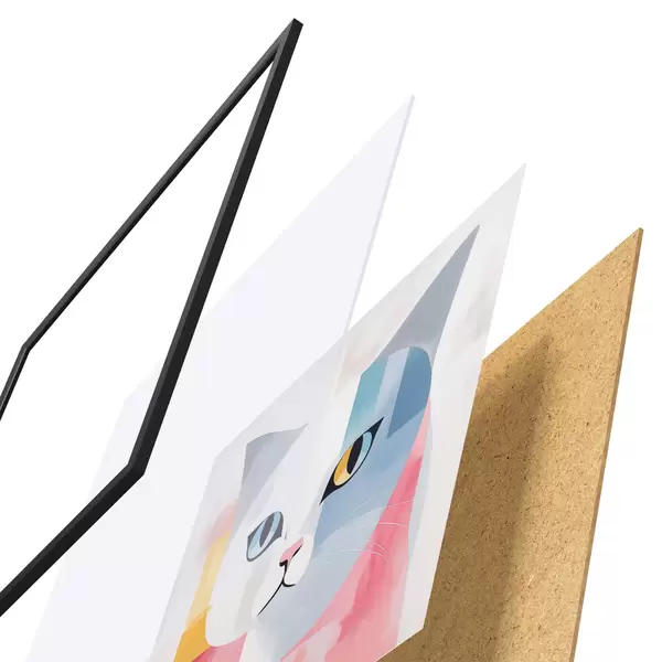A poszter keretből, plexiből, nyomtatott képből és forgácslap hátlapból áll. A poszter a hátoldalon található rögzítőknek köszönhetően azonnal felakasztható a falra.