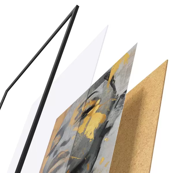 A poszter keretből, plexiből, nyomtatott képből és forgácslap hátlapból áll. A poszter a hátoldalon található rögzítőknek köszönhetően azonnal felakasztható a falra.