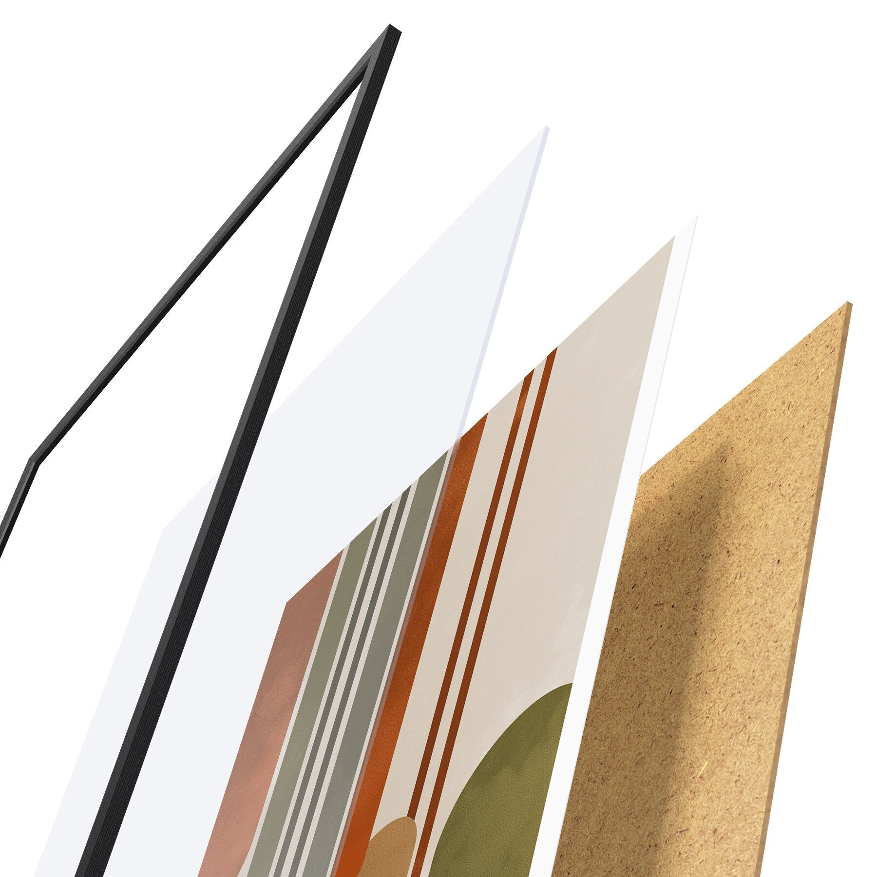A poszter keretből, plexiből, nyomtatott képből és forgácslap hátlapból áll. A poszter a hátoldalon található rögzítőknek köszönhetően azonnal felakasztható a falra.