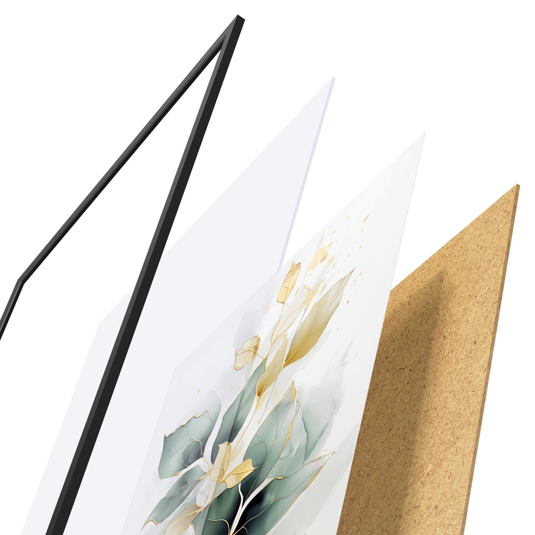 A poszter keretből, plexiből, nyomtatott képből és forgácslap hátlapból áll. A poszter a hátoldalon található rögzítőknek köszönhetően azonnal felakasztható a falra.
