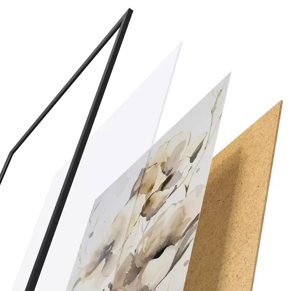 A poszter keretből, plexiből, nyomtatott képből és forgácslap hátlapból áll. A poszter a hátoldalon található rögzítőknek köszönhetően azonnal felakasztható a falra.