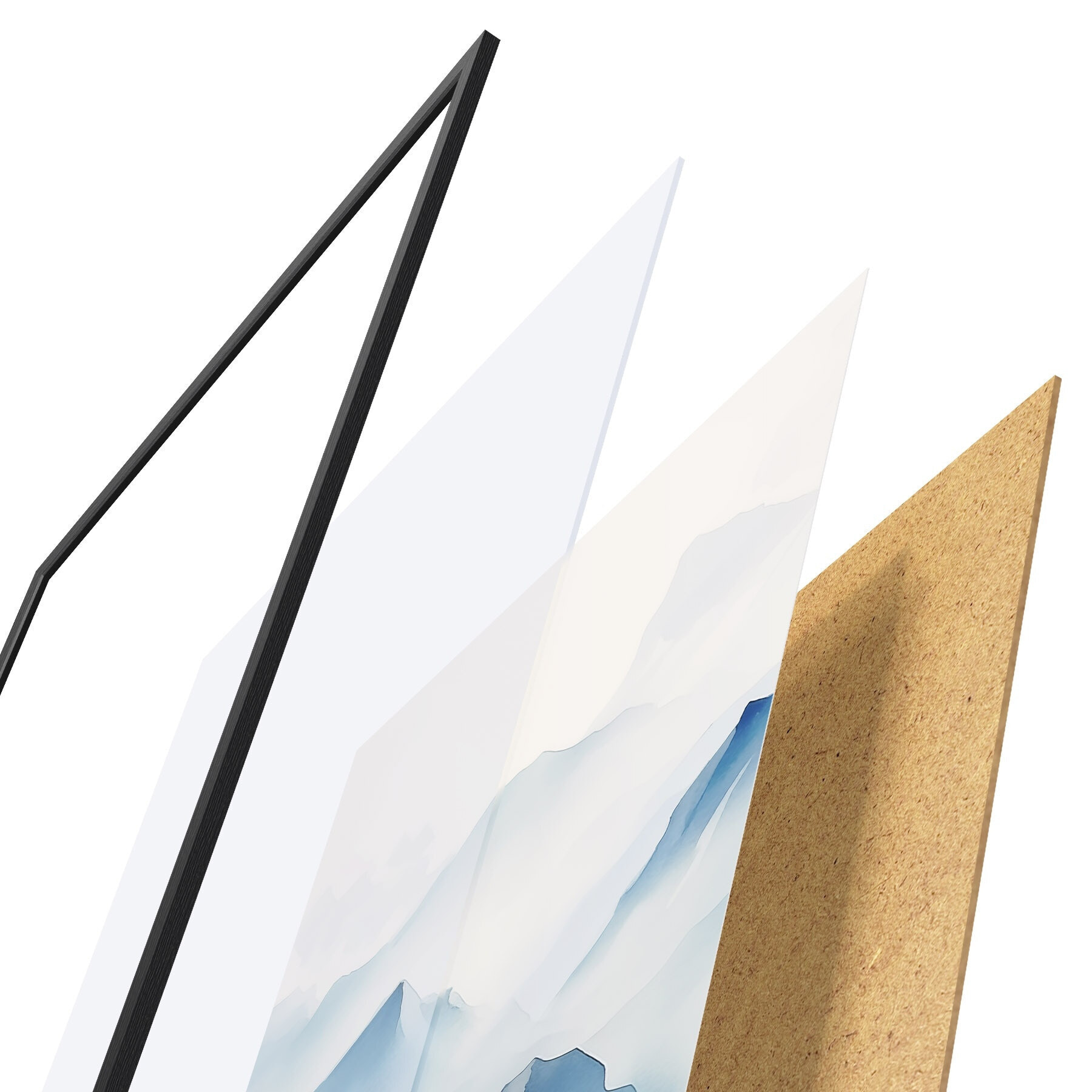 A poszter keretből, plexiből, nyomtatott képből és forgácslap hátlapból áll. A poszter a hátoldalon található rögzítőknek köszönhetően azonnal felakasztható a falra.
