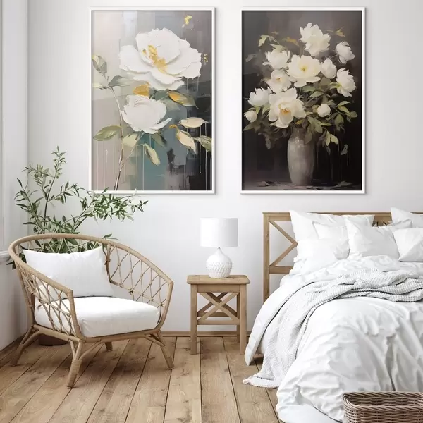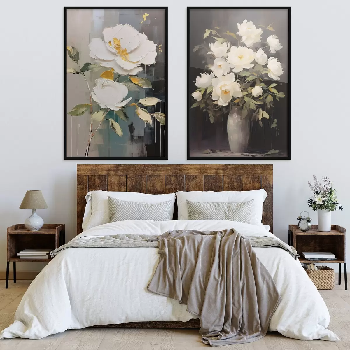 Poster Fehér bazsarózsa sötét háttéren: dekoratív kompozíció Nr d00634