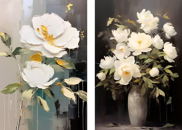 Poster Fehér bazsarózsa sötét háttéren: dekoratív kompozíció Nr d00634