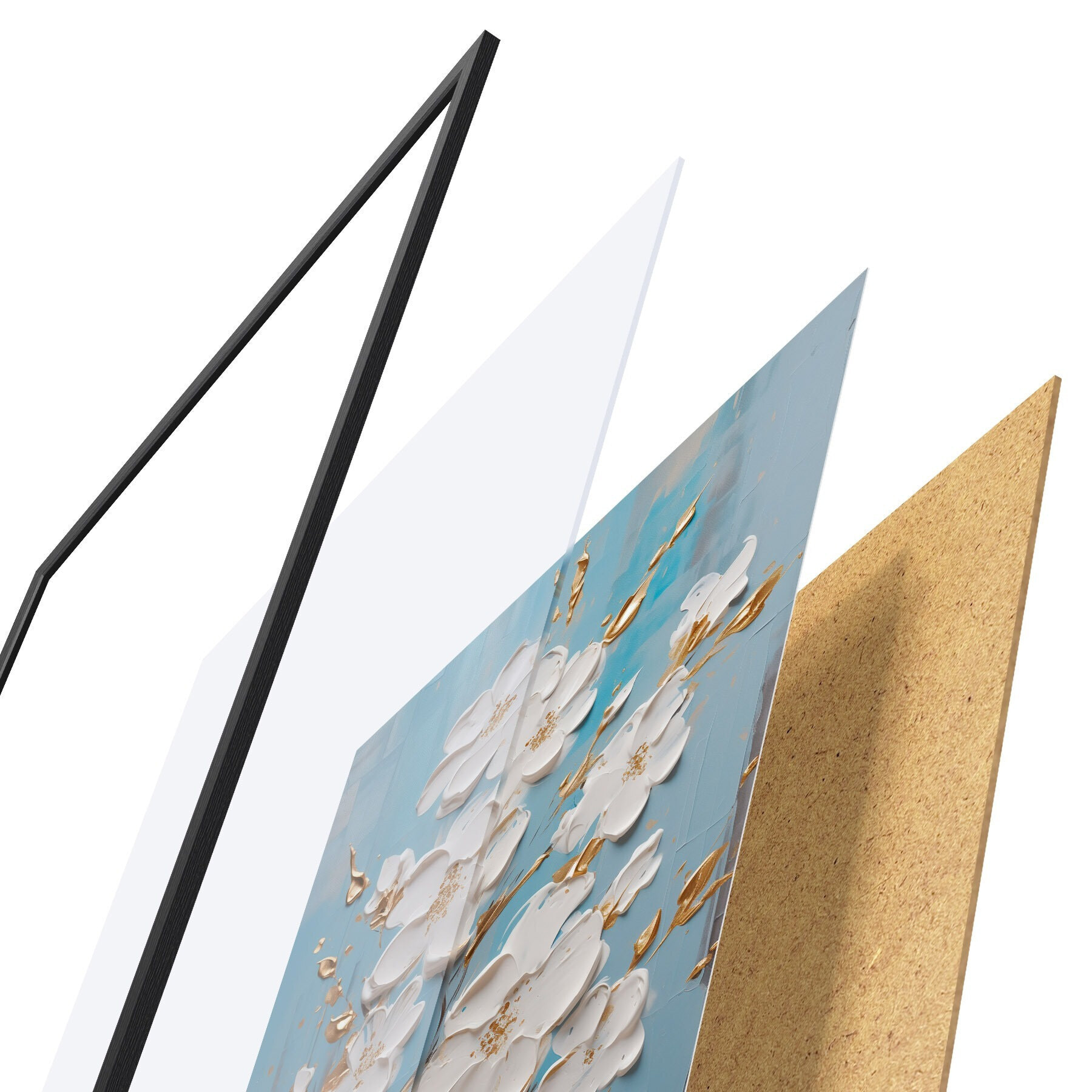 A poszter keretből, plexiből, nyomtatott képből és forgácslap hátlapból áll. A poszter a hátoldalon található rögzítőknek köszönhetően azonnal felakasztható a falra.