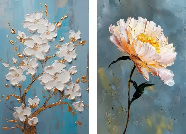 Poster Virágzó ág és bazsarózsa: relief kompozíció Nr d00637