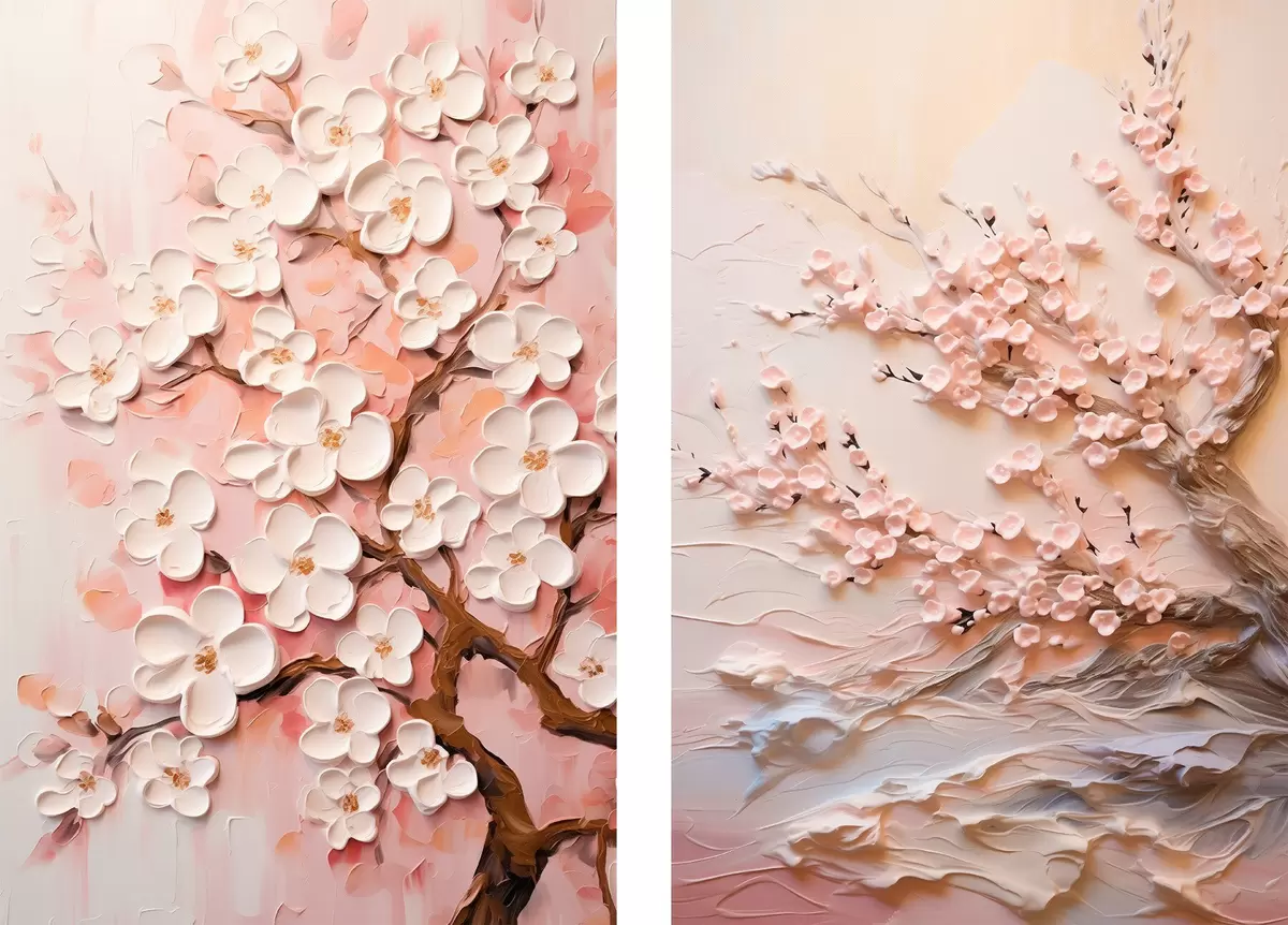 Poster Virágzó sakura: kompozíció impasto stílusban Nr d00638