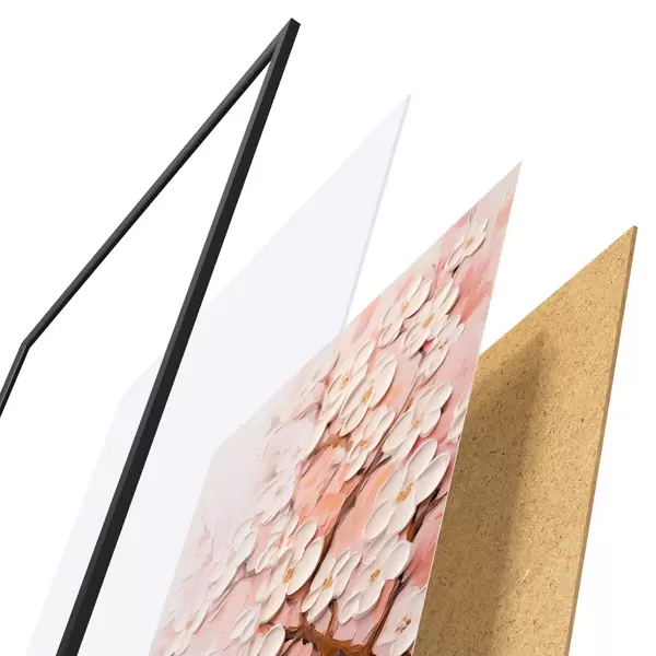 A poszter keretből, plexiből, nyomtatott képből és forgácslap hátlapból áll. A poszter a hátoldalon található rögzítőknek köszönhetően azonnal felakasztható a falra.