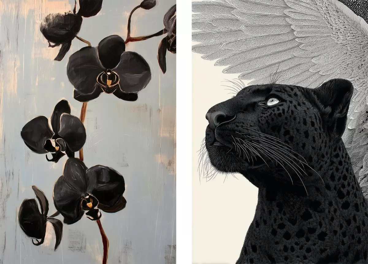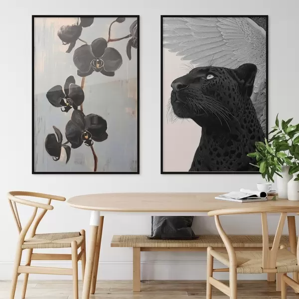 Poster Sötét orchideák és szárnyas állat: művészi kompozíció Nr d00640