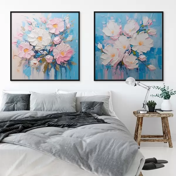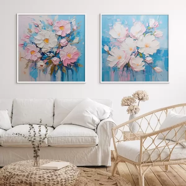 Plakát a sziklán Absztrakt virágok: dekoratív kompozíció rózsaszín és kék tónusokban d00643