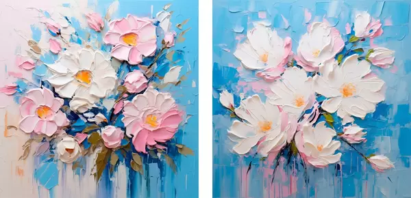 Plakát a sziklán Absztrakt virágok: dekoratív kompozíció rózsaszín és kék tónusokban d00643