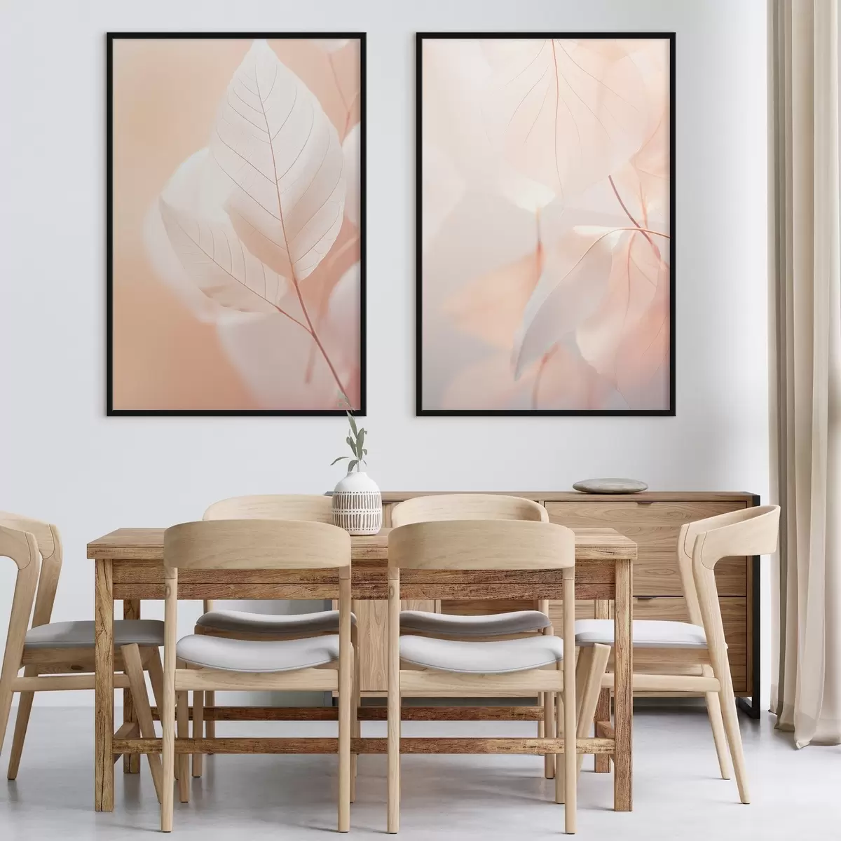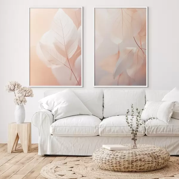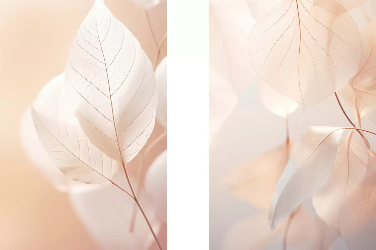 Poster Közelkép áttetsző levelek finom erezettel, lágy barack és fehér színpaletta, elmosódott háttérrel Nr d00647