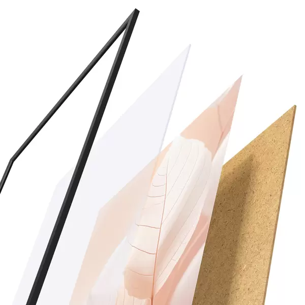 A poszter keretből, plexiből, nyomtatott képből és forgácslap hátlapból áll. A poszter a hátoldalon található rögzítőknek köszönhetően azonnal felakasztható a falra.