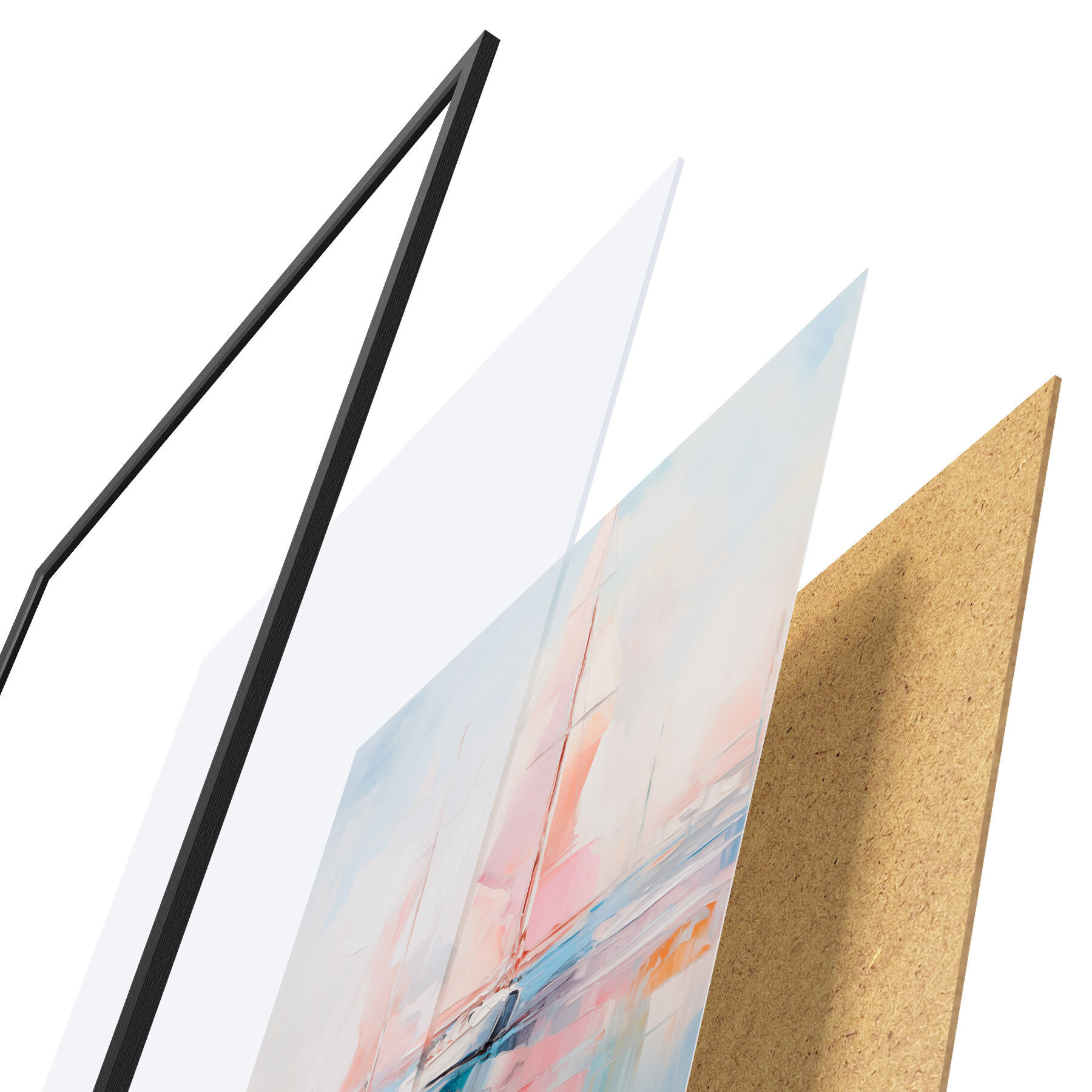 A poszter keretből, plexiből, nyomtatott képből és forgácslap hátlapból áll. A poszter a hátoldalon található rögzítőknek köszönhetően azonnal felakasztható a falra.