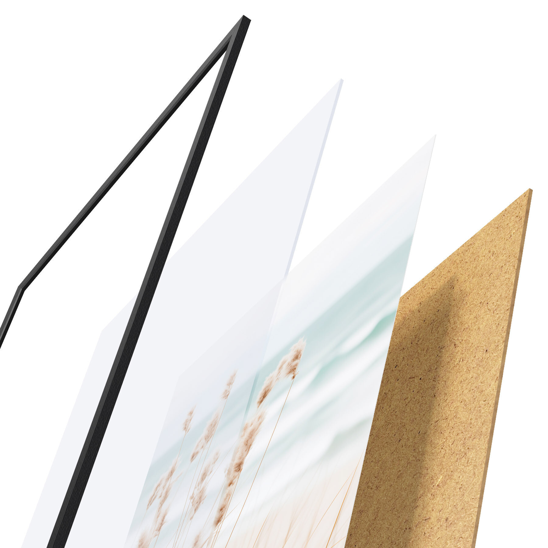 A poszter keretből, plexiből, nyomtatott képből és forgácslap hátlapból áll. A poszter a hátoldalon található rögzítőknek köszönhetően azonnal felakasztható a falra.