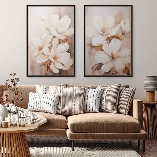 Poster Fehér magnólia virágok lágy, elmosódott háttér előtt, bézs és barna tónusok, festmény stílusban Nr d00655
