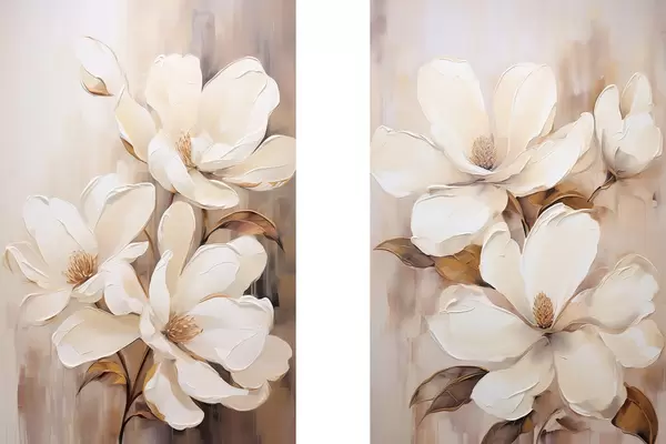 Poster Fehér magnólia virágok lágy, elmosódott háttér előtt, bézs és barna tónusok, festmény stílusban Nr d00655