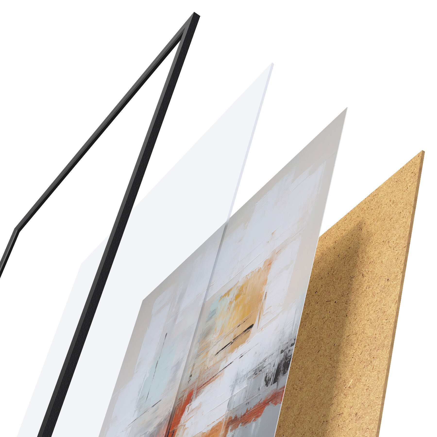 A poszter keretből, plexiből, nyomtatott képből és forgácslap hátlapból áll. A poszter a hátoldalon található rögzítőknek köszönhetően azonnal felakasztható a falra.
