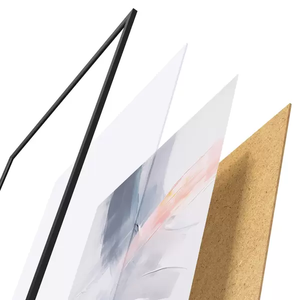 A poszter keretből, plexiből, nyomtatott képből és forgácslap hátlapból áll. A poszter a hátoldalon található rögzítőknek köszönhetően azonnal felakasztható a falra.