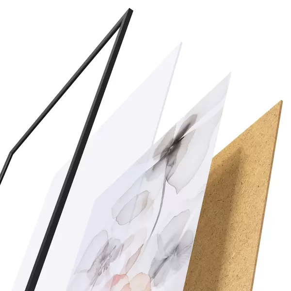 A poszter keretből, plexiből, nyomtatott képből és forgácslap hátlapból áll. A poszter a hátoldalon található rögzítőknek köszönhetően azonnal felakasztható a falra.