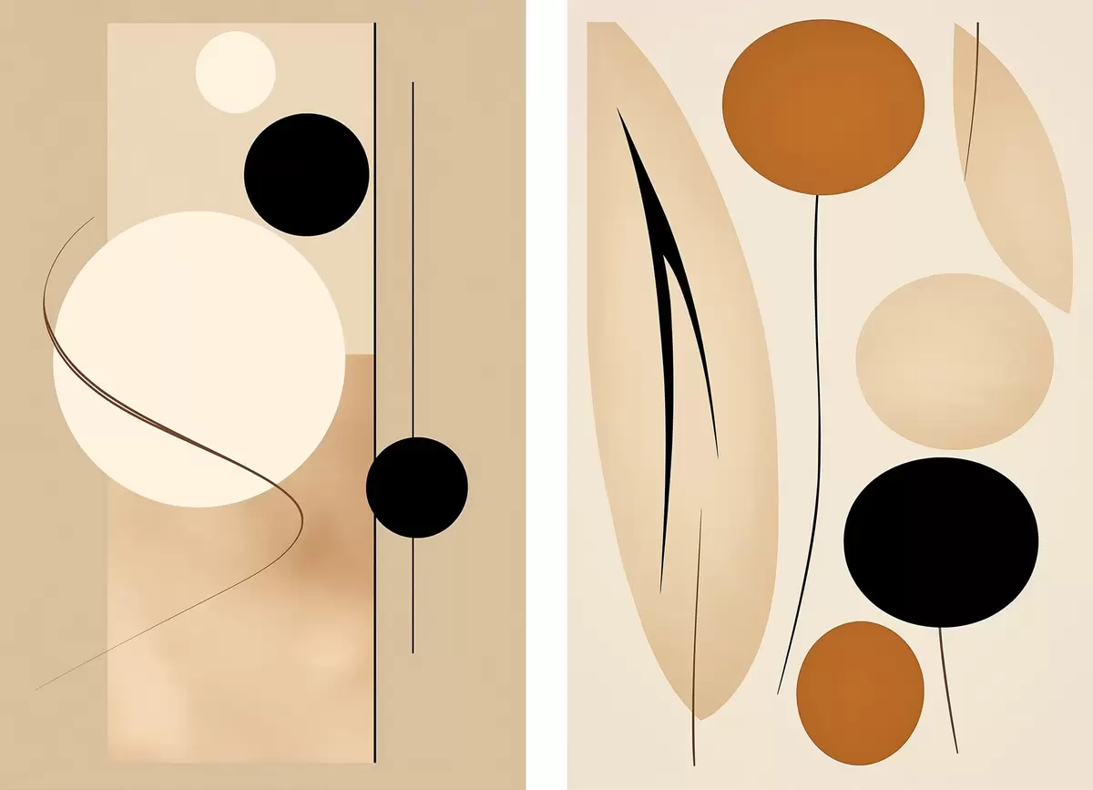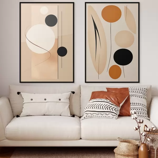 Poster Minimalista geometrikus körök bézs és fekete tónusokban Nr d00685