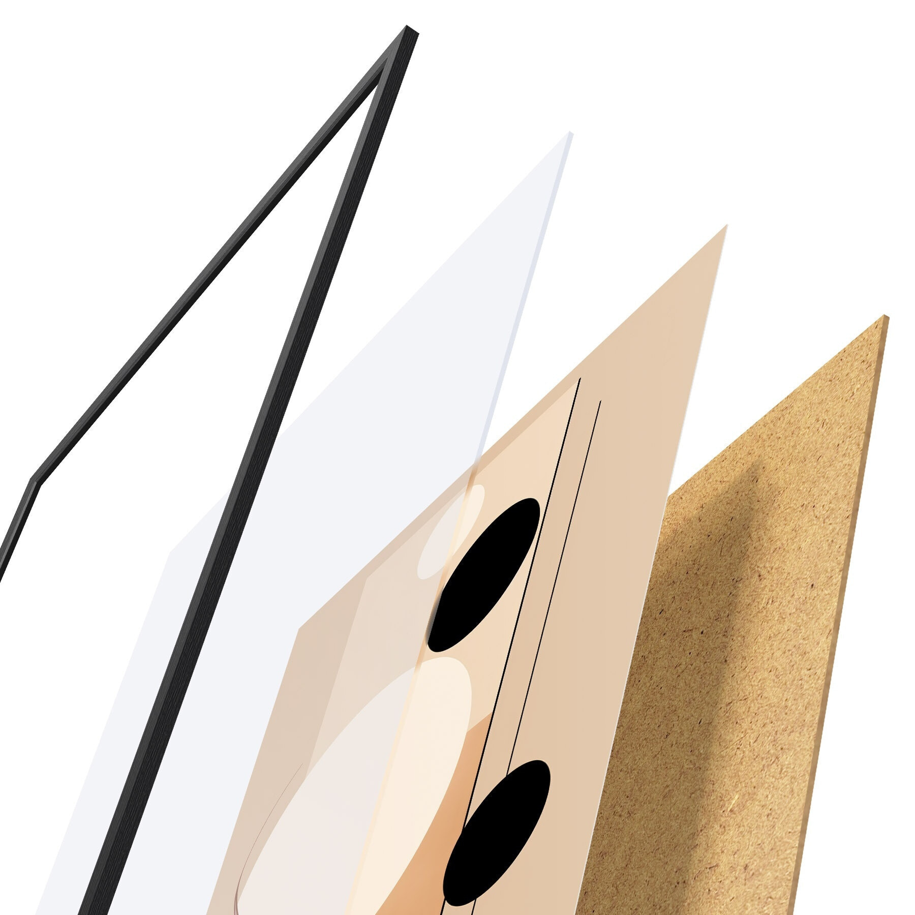 A poszter keretből, plexiből, nyomtatott képből és forgácslap hátlapból áll. A poszter a hátoldalon található rögzítőknek köszönhetően azonnal felakasztható a falra.
