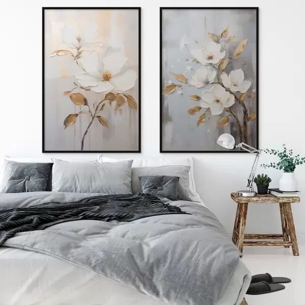 Poster Két fehér virág sárga-narancssárga levelekkel világos háttéren Nr d00687