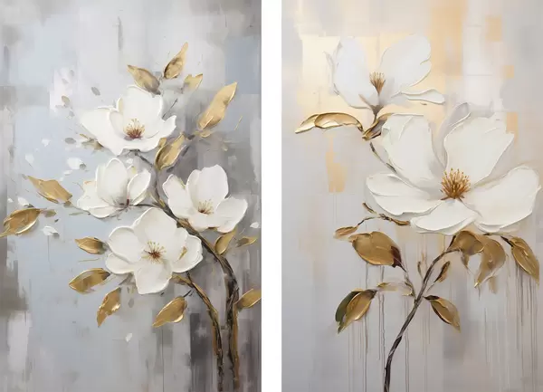 Poster Két fehér virág sárga-narancssárga levelekkel világos háttéren Nr d00687