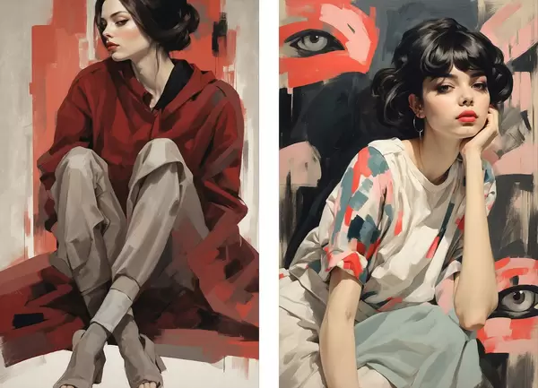 Poster Portrék a lányok piros és bézs absztrakt stílusok Nr d00695