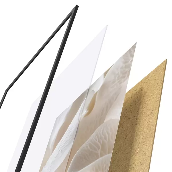 A poszter keretből, plexiből, nyomtatott képből és forgácslap hátlapból áll. A poszter a hátoldalon található rögzítőknek köszönhetően azonnal felakasztható a falra.