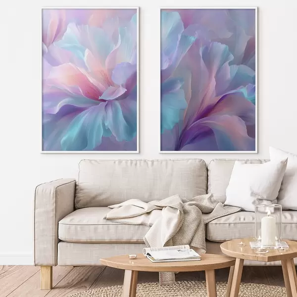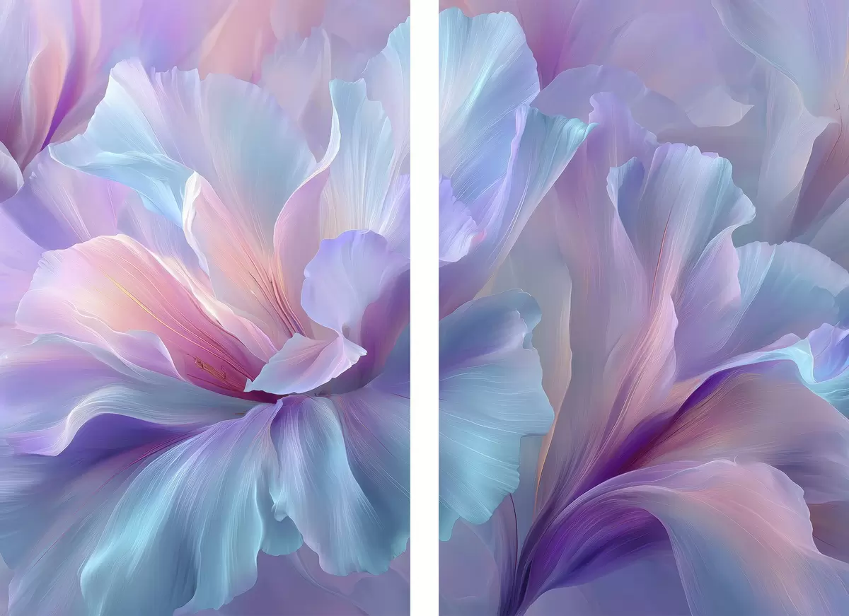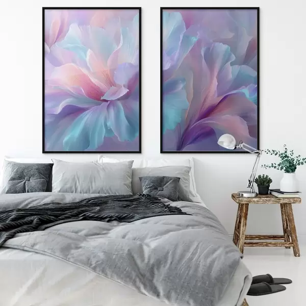 Poster finom, fantáziadús virágok, lila, kék és rózsaszín árnyalatú szirmokkal Nr d00700